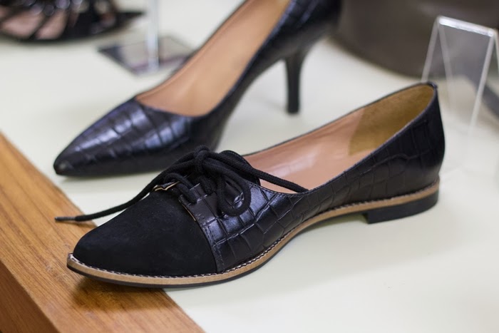“ Além disso, a eterna disputa da mulher entre o masculino e o feminino é representada aqui pelos oxfords, que ganham detalhes em materiais diferenciados, como pelo, atanado, croco e verniz, fazendo pacto com as peças de alfaiataria.”