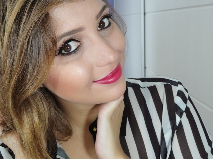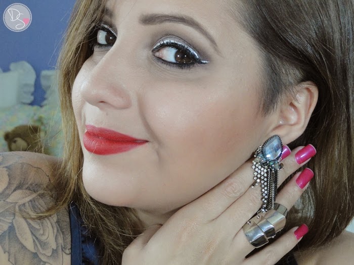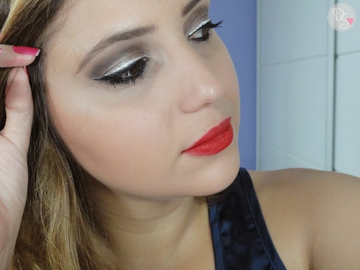 Resolvi fazer uma maquiagem com delineado duplo e boca vermelha. O batom que usei foi o meu queridinho Ruby woo da MAC, mas você pode usar o seu vermelho preferido ou um outro batom que desejar.