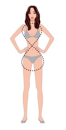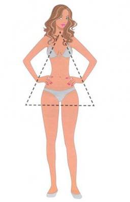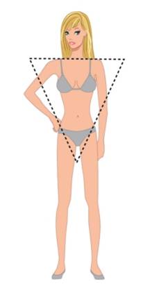 Mulher violão: Ombros e quadris da mesma largura, cintura bem definida.
